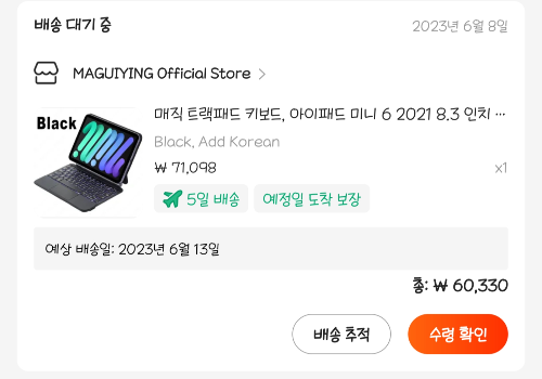 꽁돈대첩 할인을 받아 6만원에 살 수 있는 걸 알게 되어 바~로! 구매 했습니다.