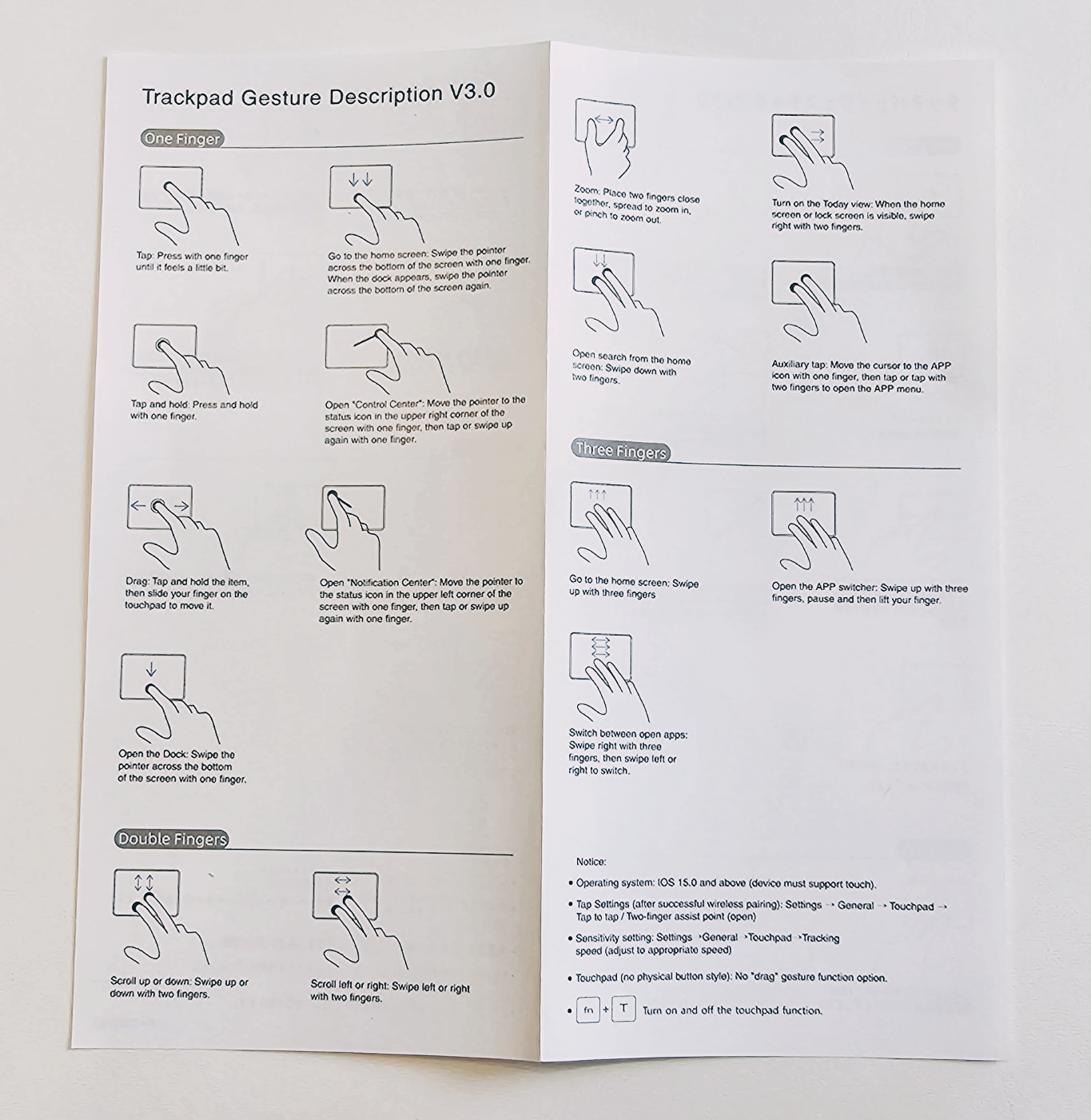 트랙패드 사용법에 대한 영문 설명서입니다.