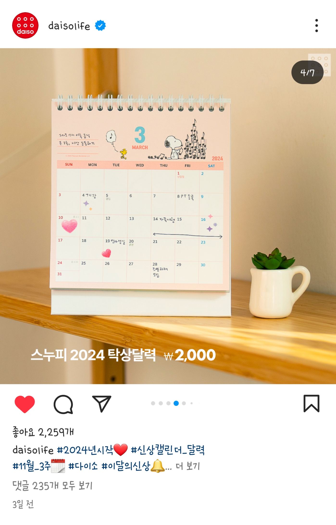 요 계정은 다이소에서 인스타를 운영하는 계정이에요.