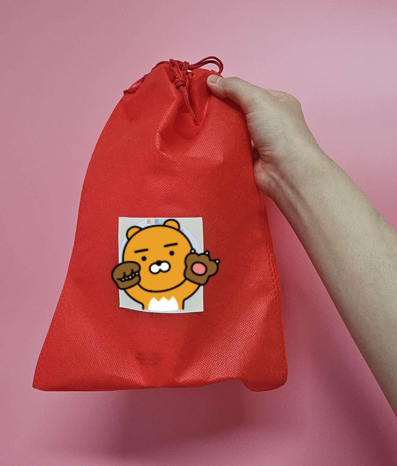 부직포 더스트백에 답례 스티커까지 붙이니,