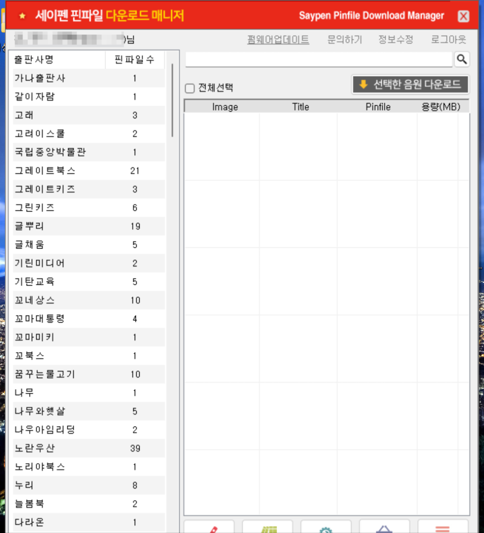 로그인 하면 위와 같이 각 출판사별로 세이펜을 지원해주는 책을 찾아 다운 받을 수 있어요 ^^