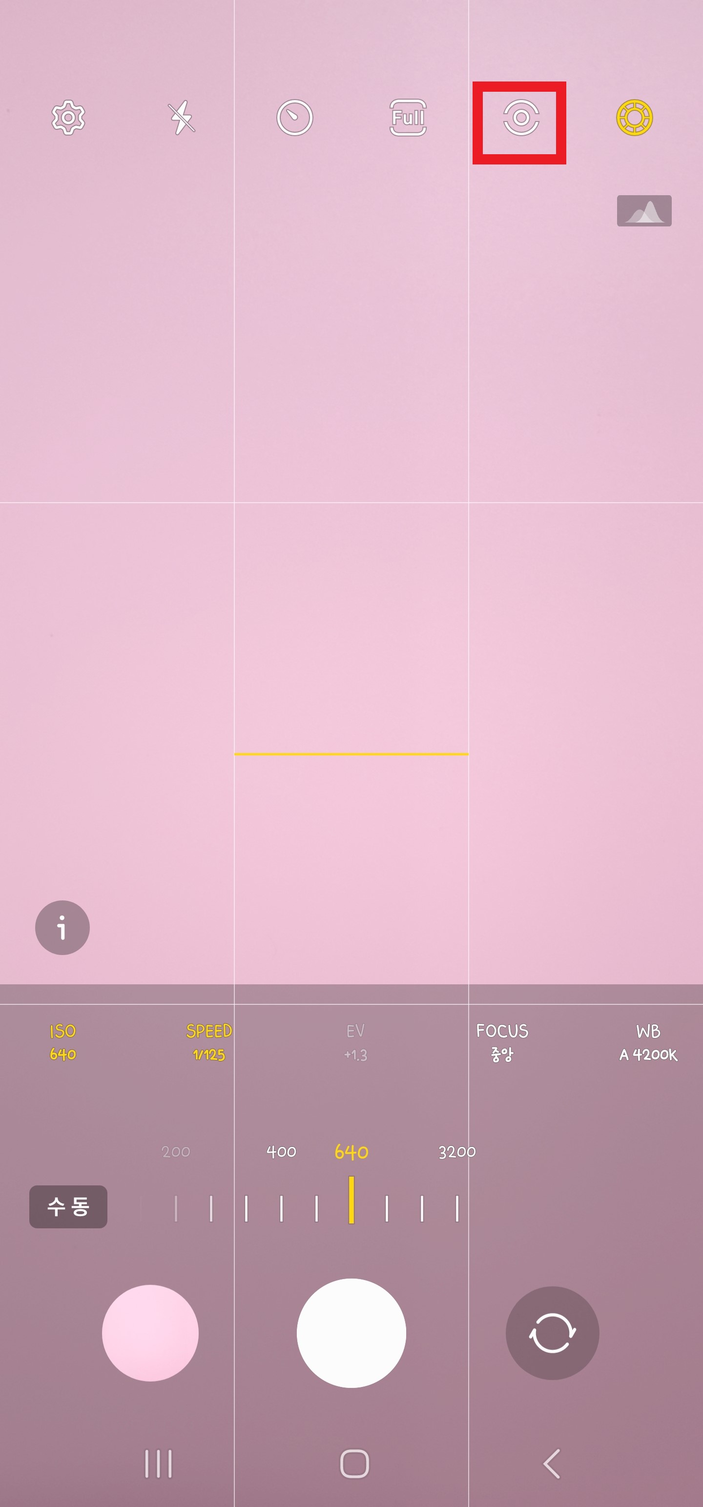 위의 '프로' 모드에서 상단 오른쪽에서 두번째에 있는 측광 아이콘을 클릭하고,