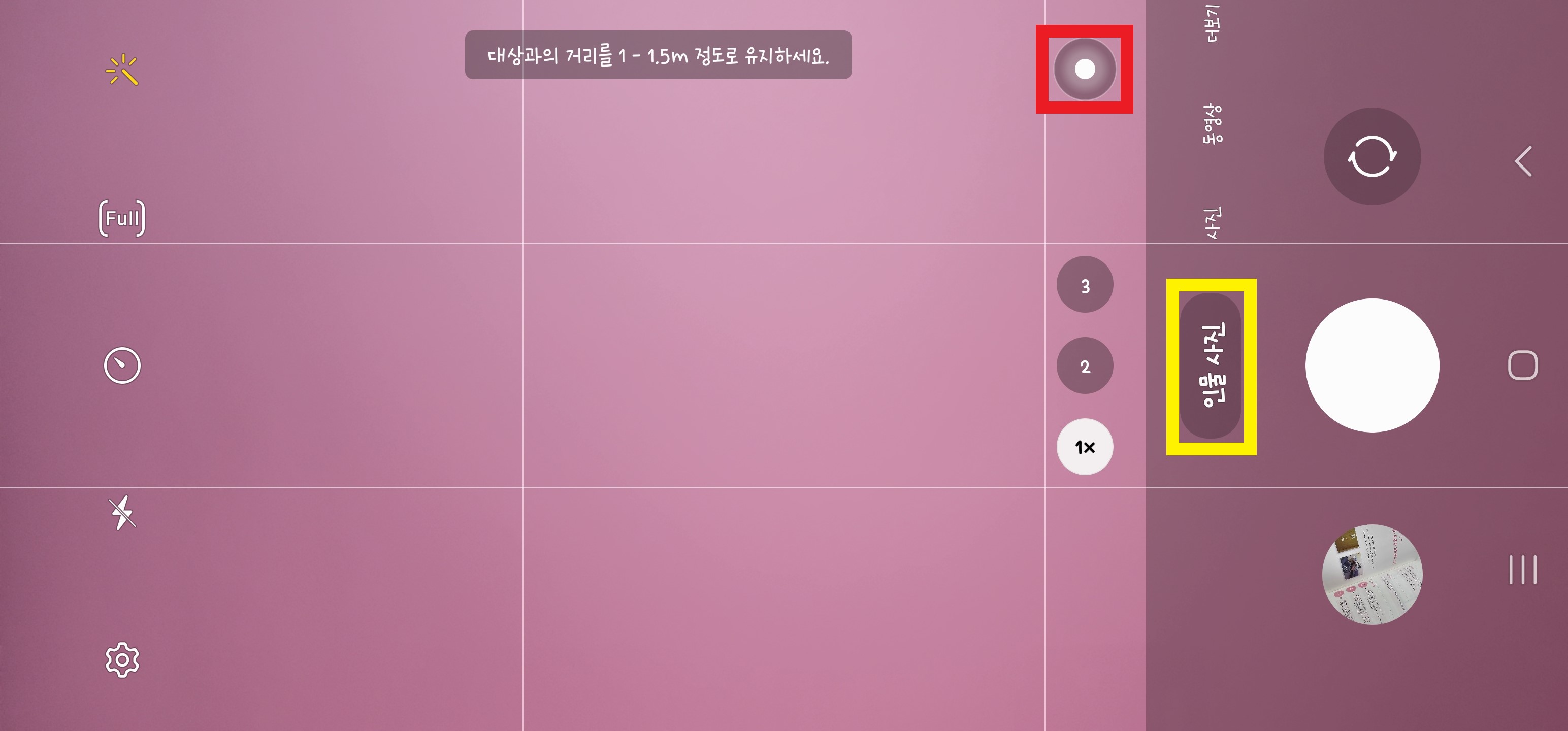 1x(배), 2배, 3배 확대해서 촬영할 수 있고,