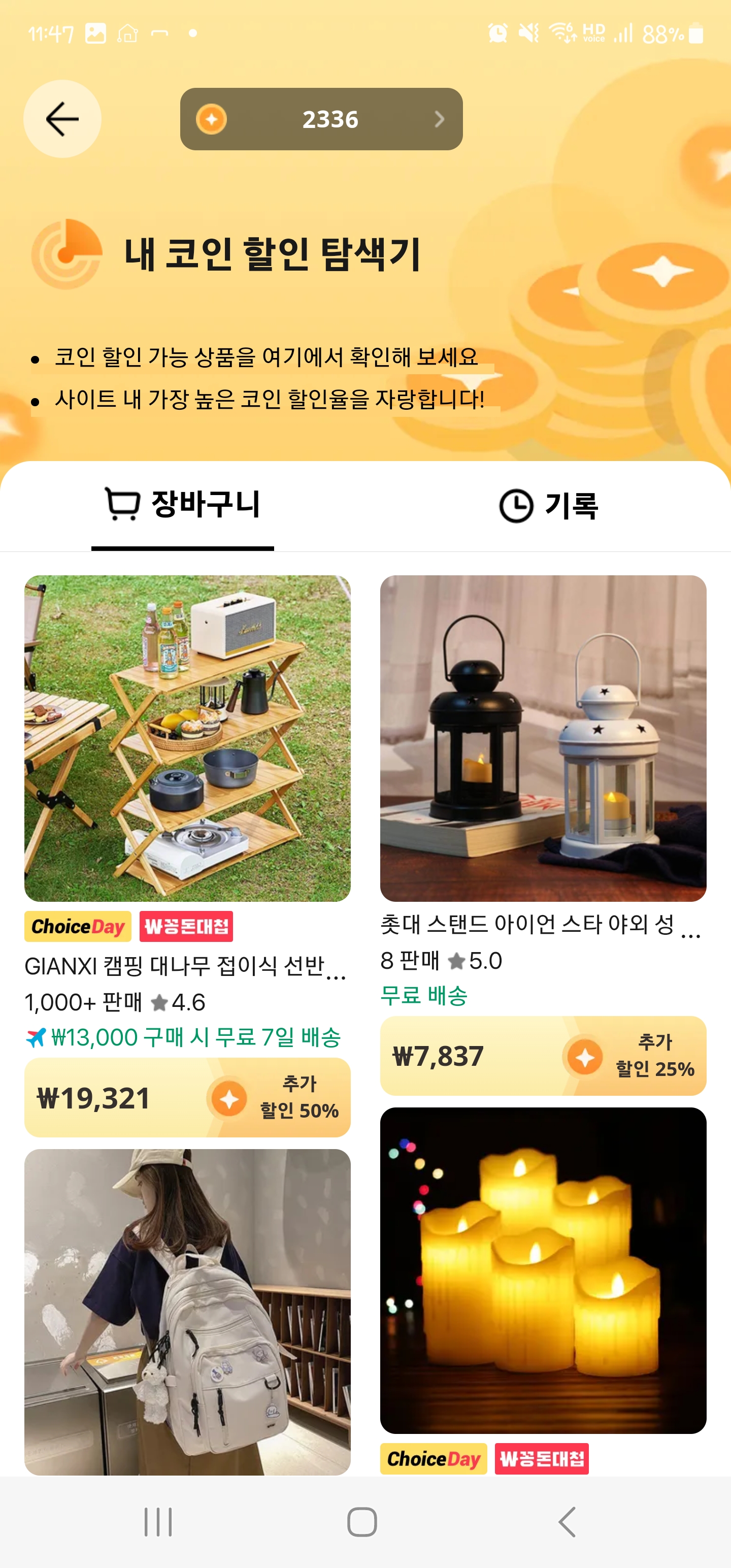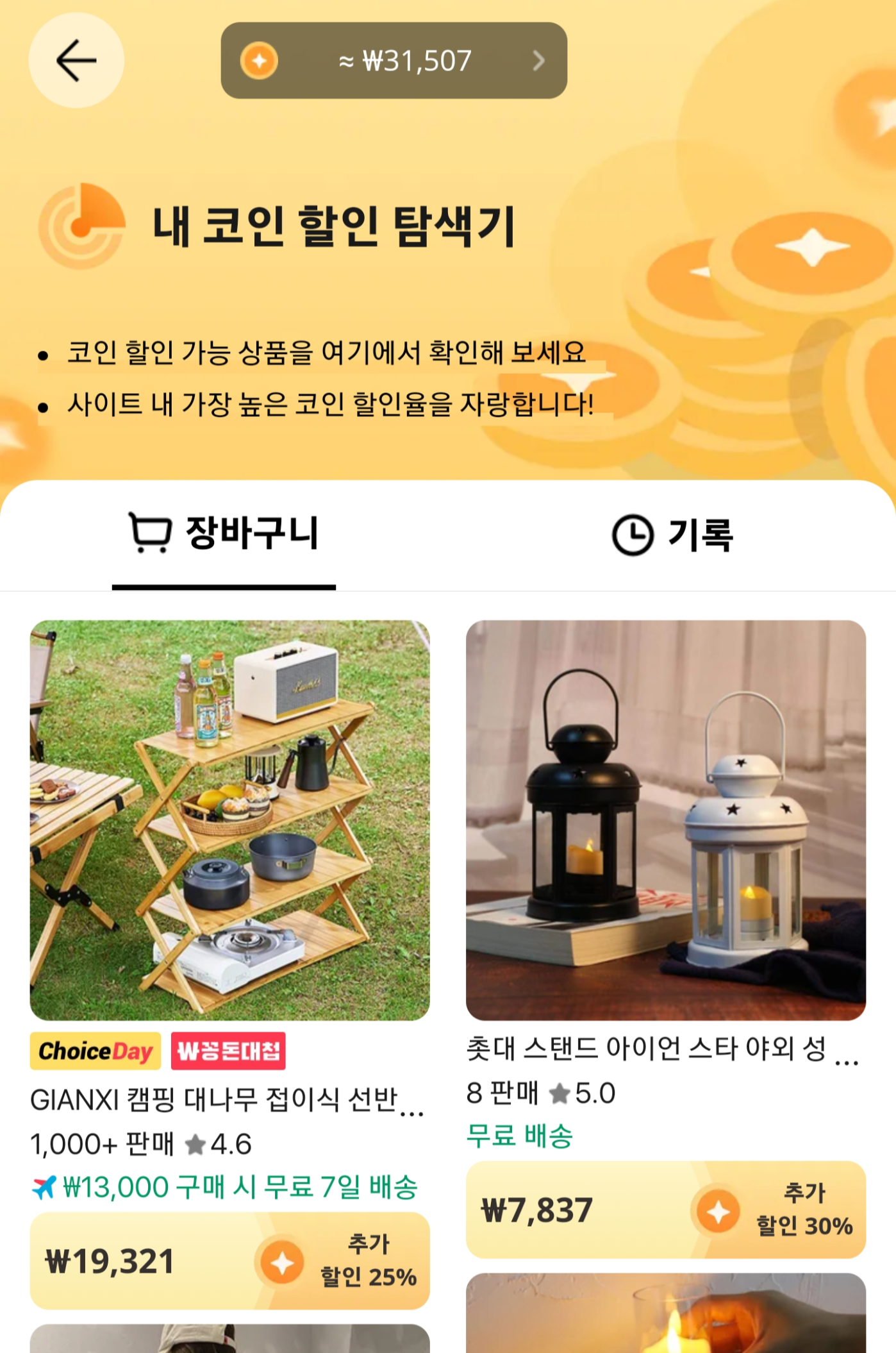 중간에 코인 사용하기 옆에 코인 할인 탐색기가 보이실 거에요!