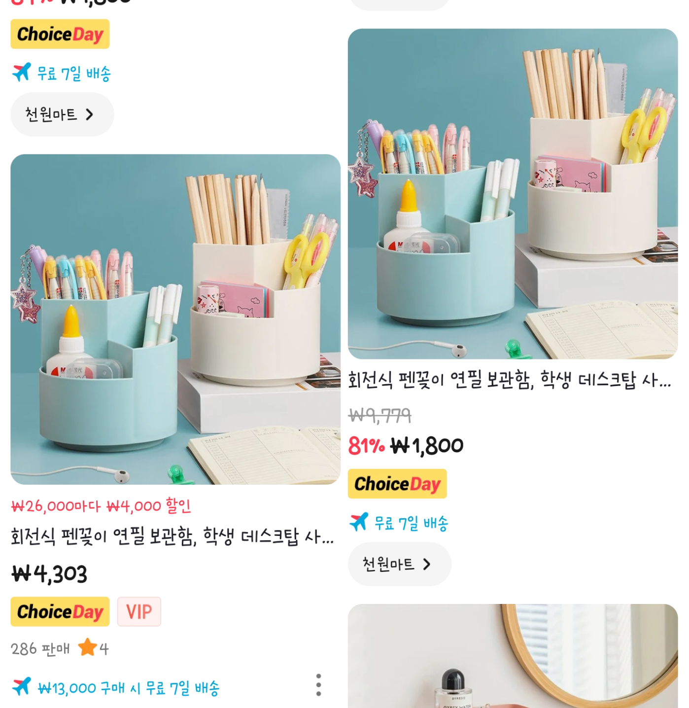 예를 들어서 '펜 꽂이'라고 검색했을 때의 결과에요.