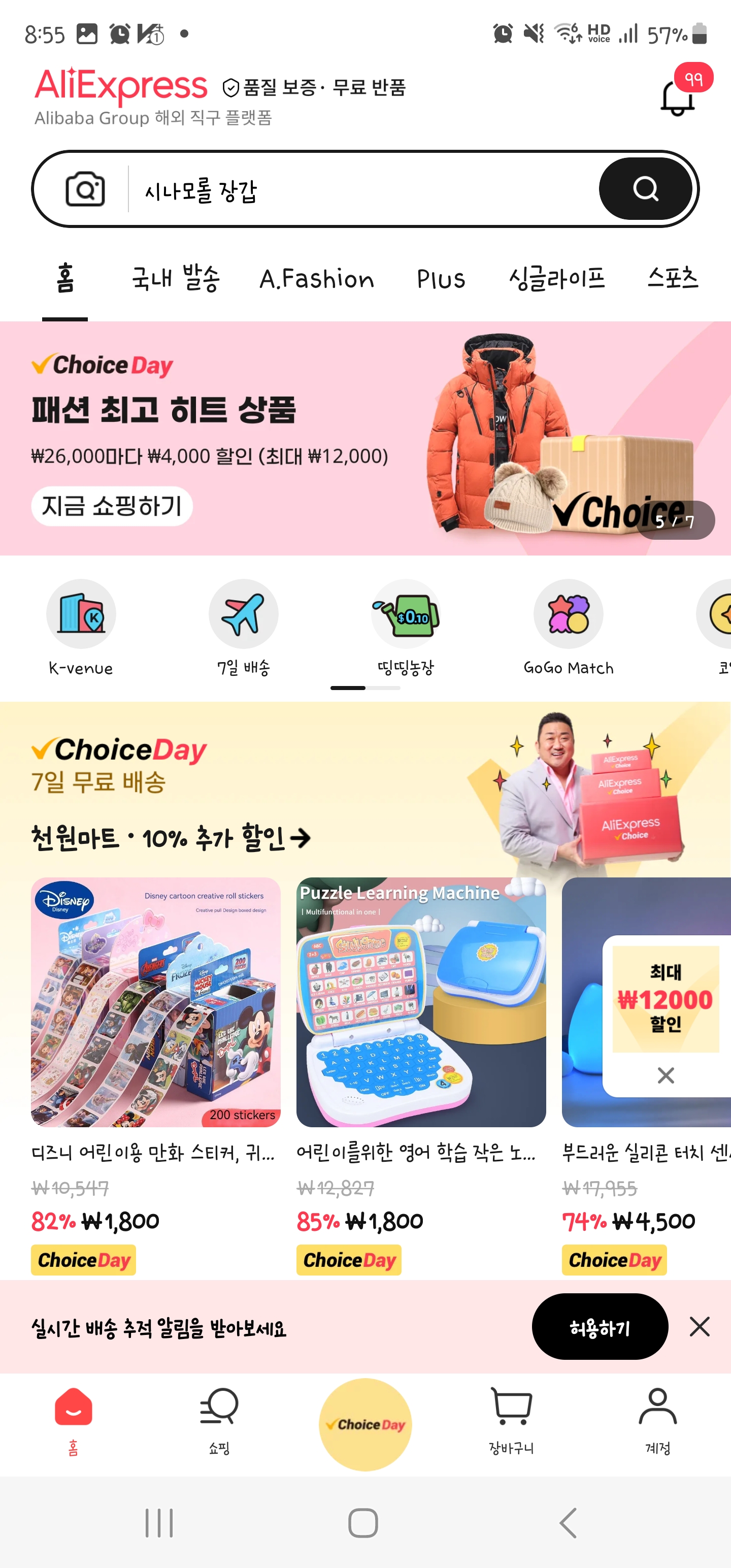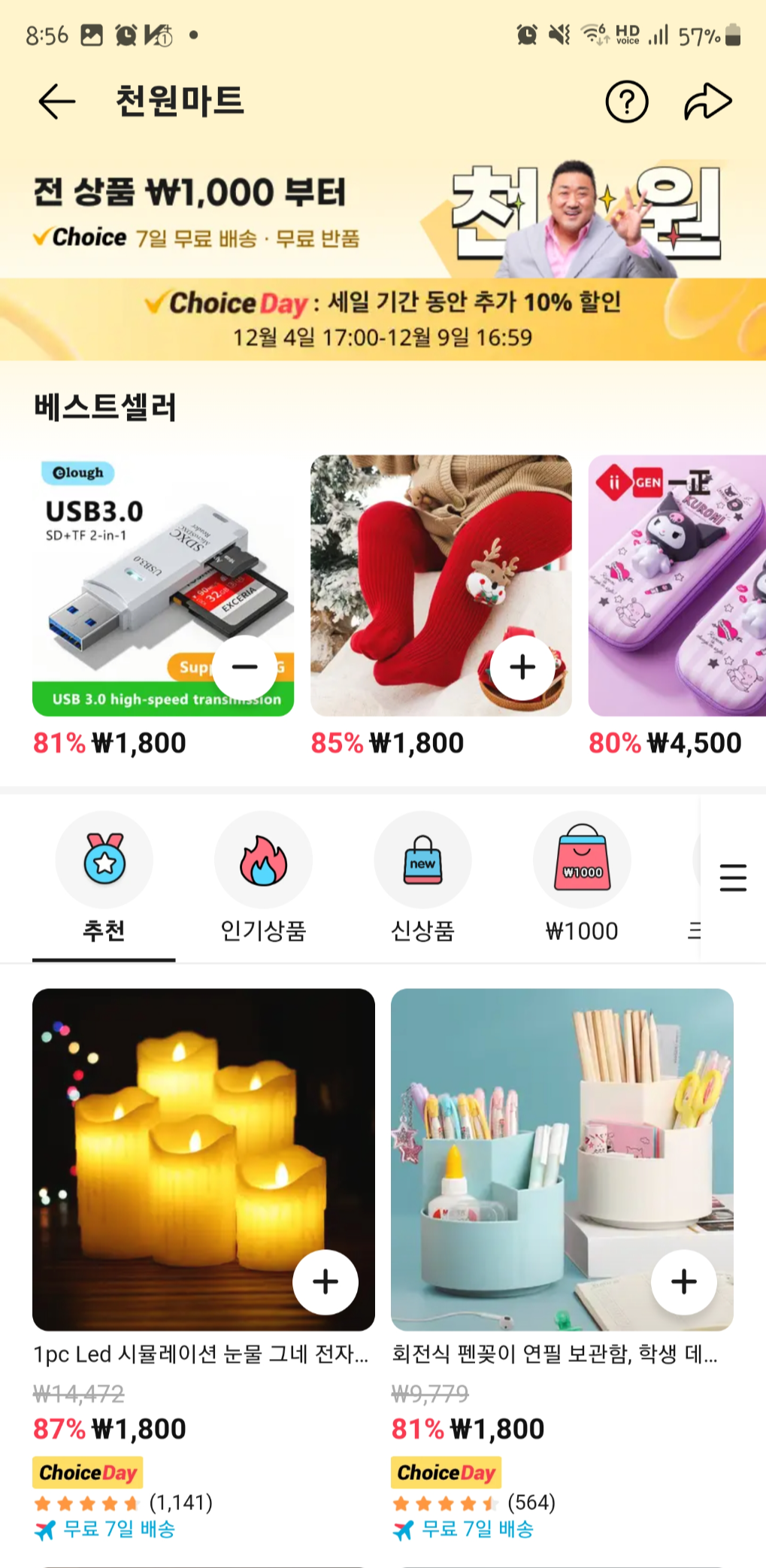 오른쪽에 있는 상품은 초이스데이 중, '천원마트' 상품,