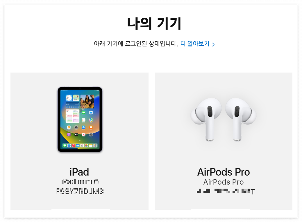 이렇게 기기의 일련번호와 구입일자를 확인할 수 있습니다.