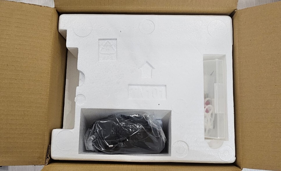 파손이 되면 안 되는 제품이다 보니, 포장은 스티로폼으로 단단하게 고정되어 왔다.
