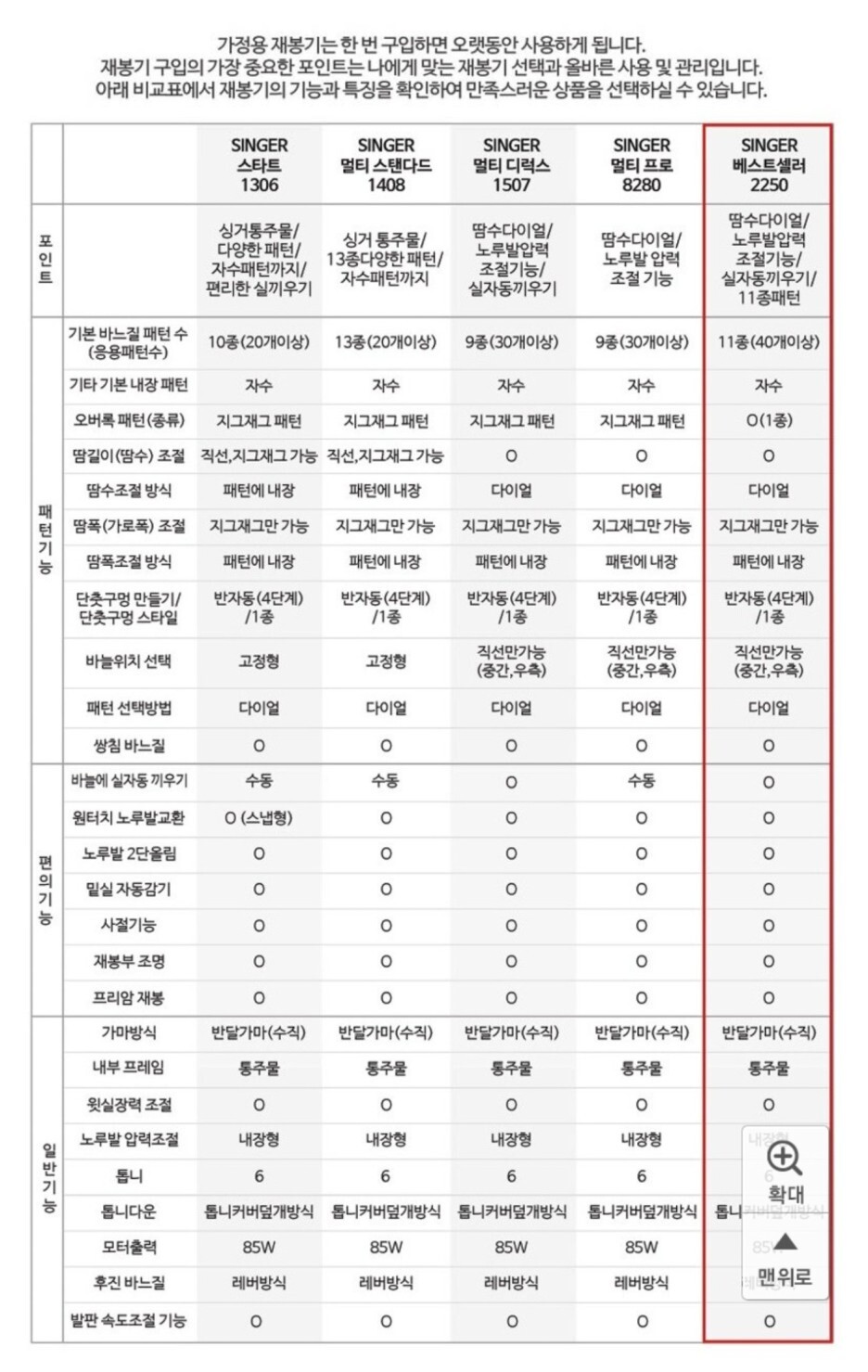 이미지 출처 : 쿠팡 싱거 2250 내용 중, 캡쳐