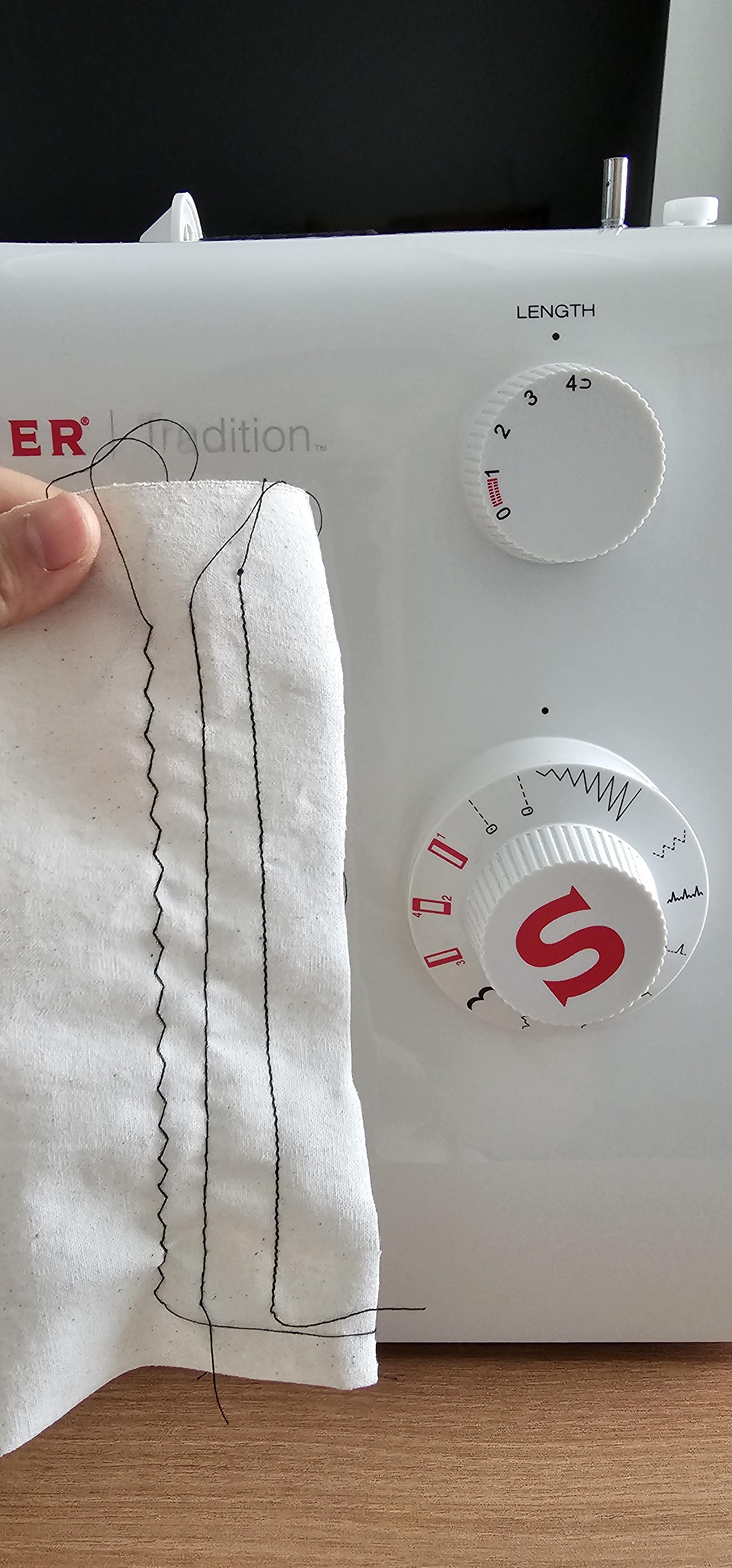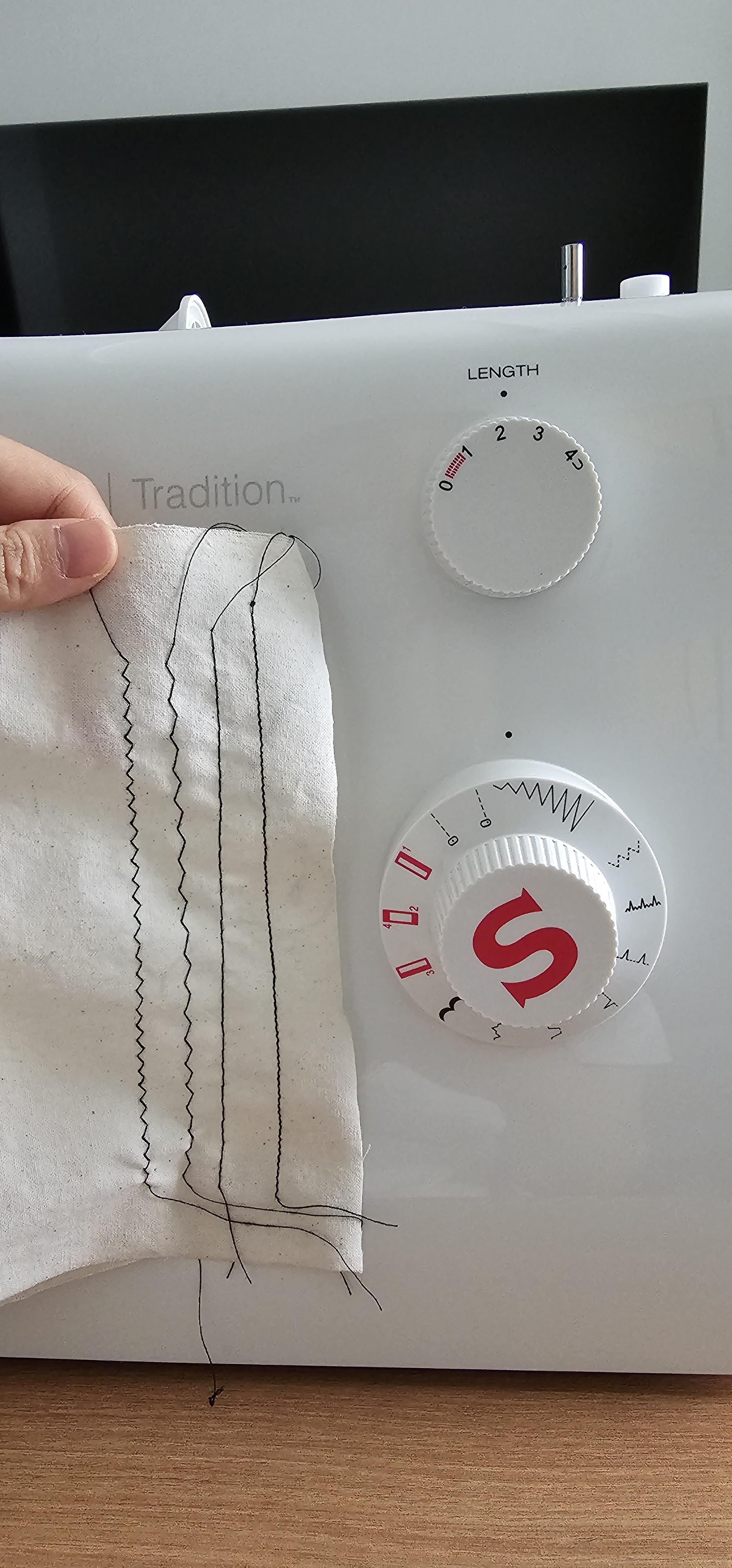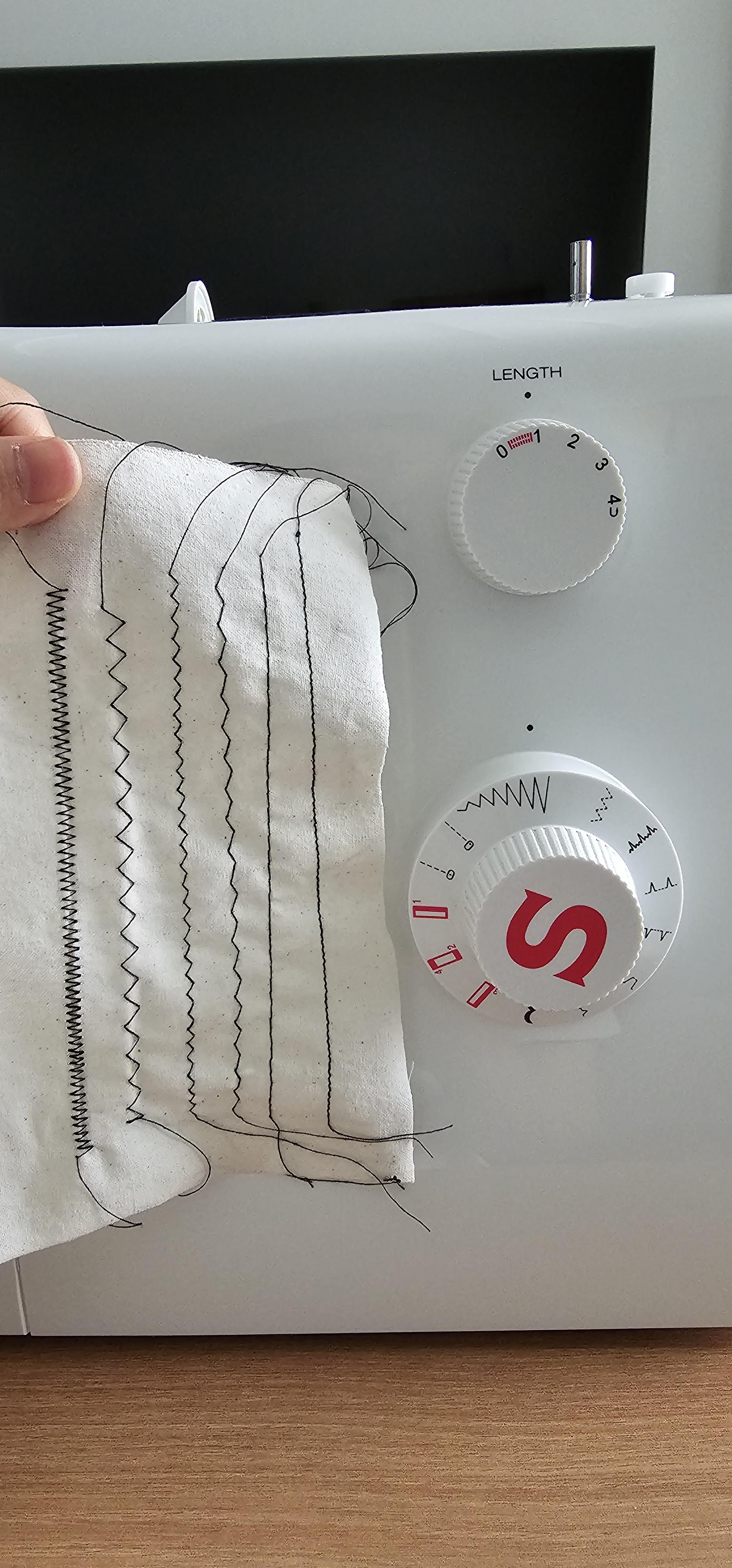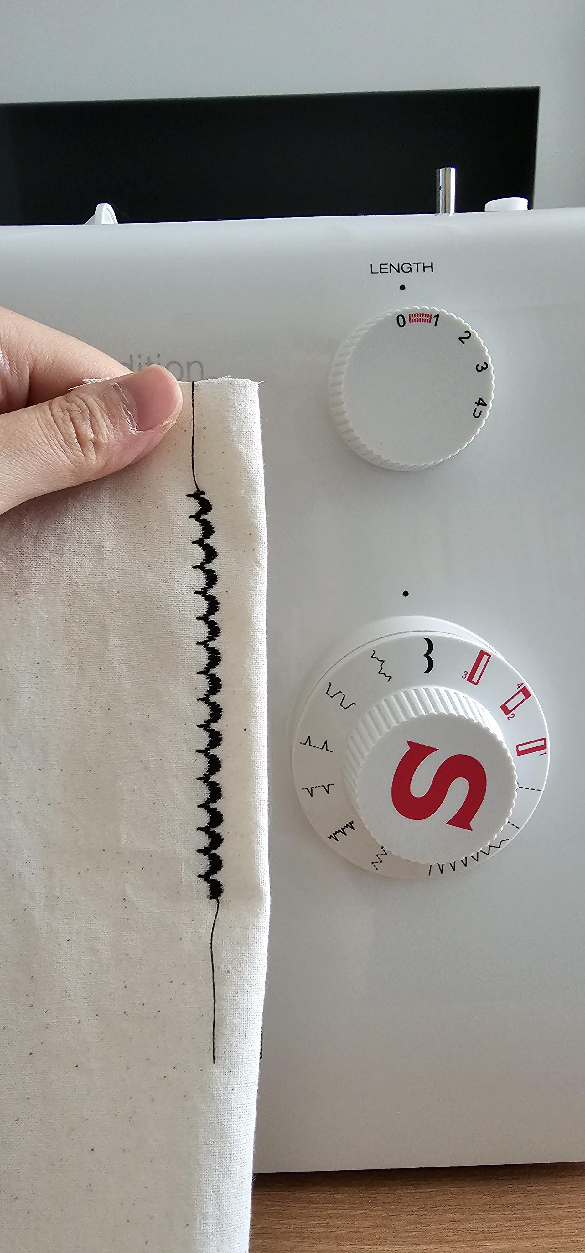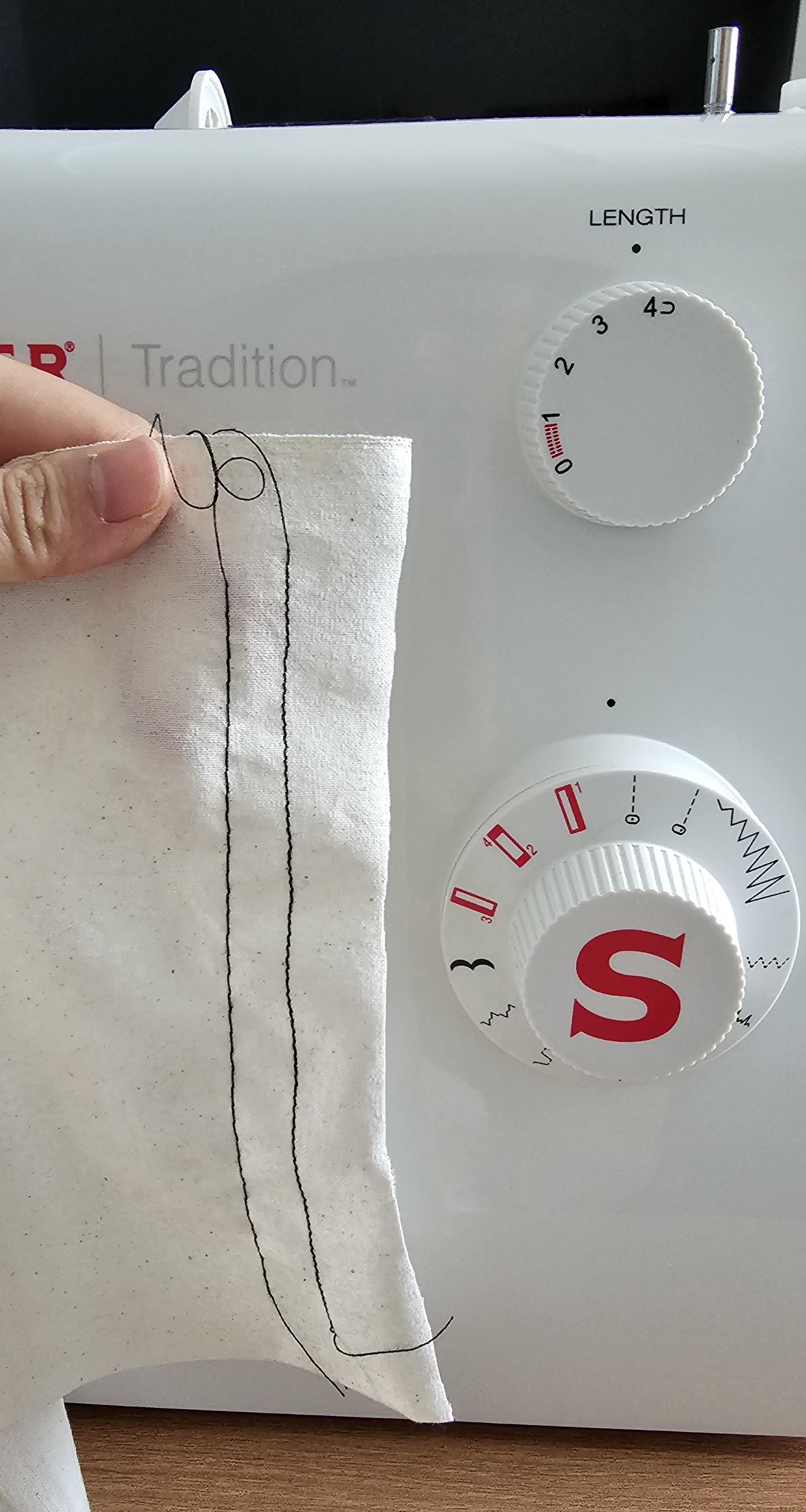 각각 2, 4로 다이얼을 맞춰놓고 재봉해봤다.