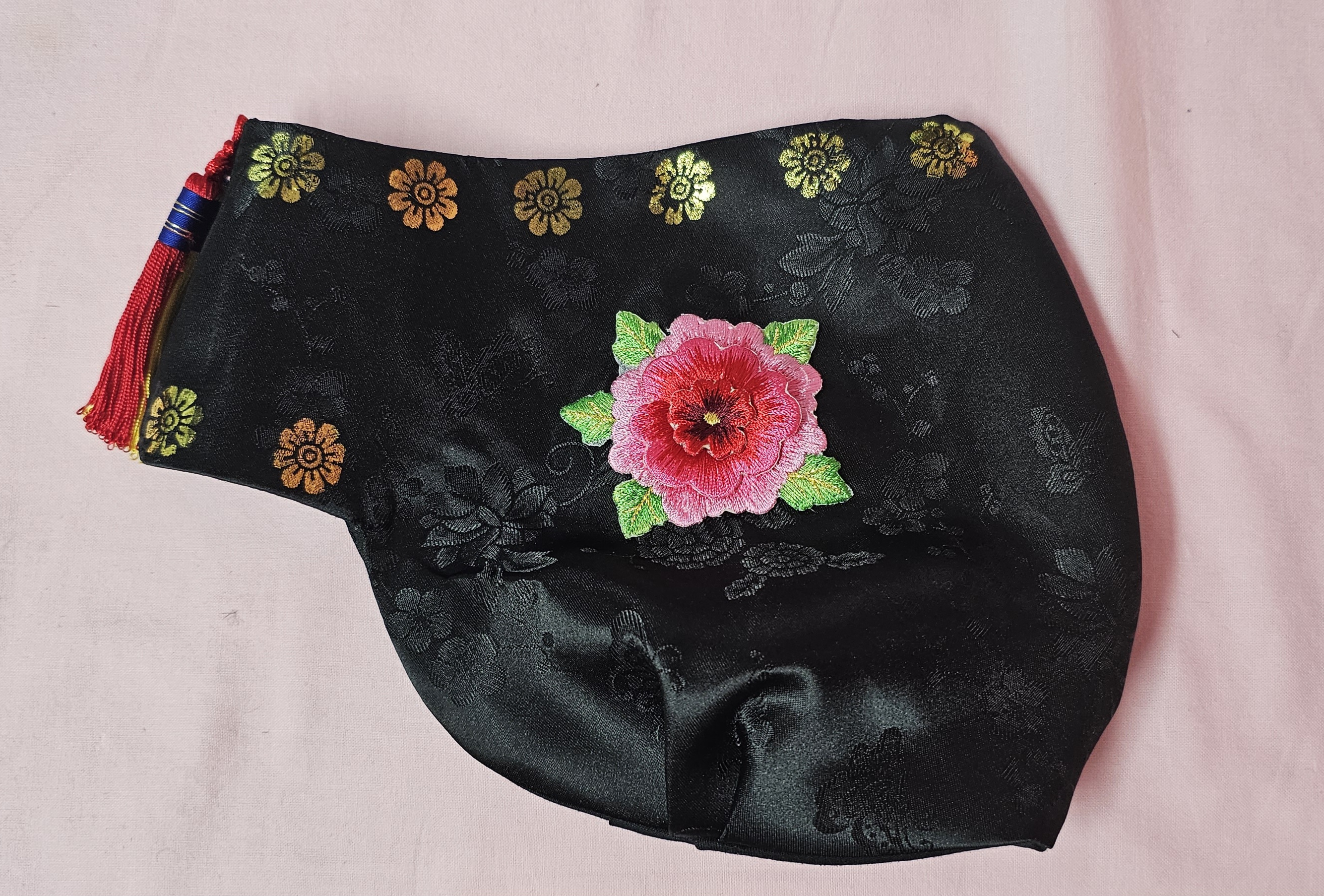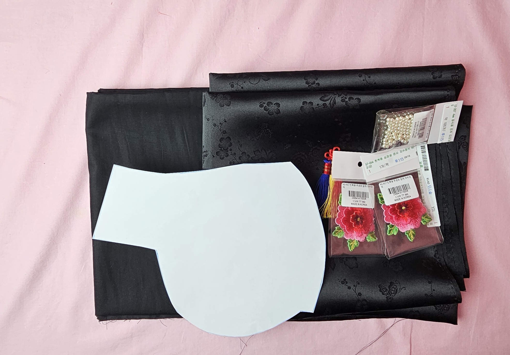 큰 모양을 구입하려면 또 배송비도 붙고, 양도 너무 많아서,옆 모습의 포인트 부분은 자수꽃을 구입해서 박았습니다.
