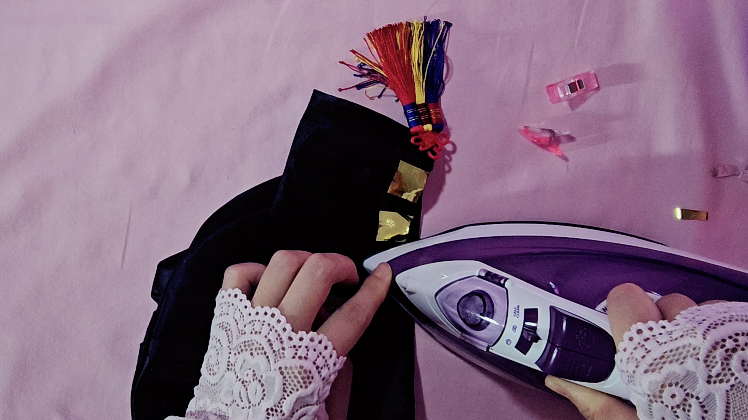 원래는 한복에 붙이려고 했던 금박을 꺼내 붙여줬습니다.