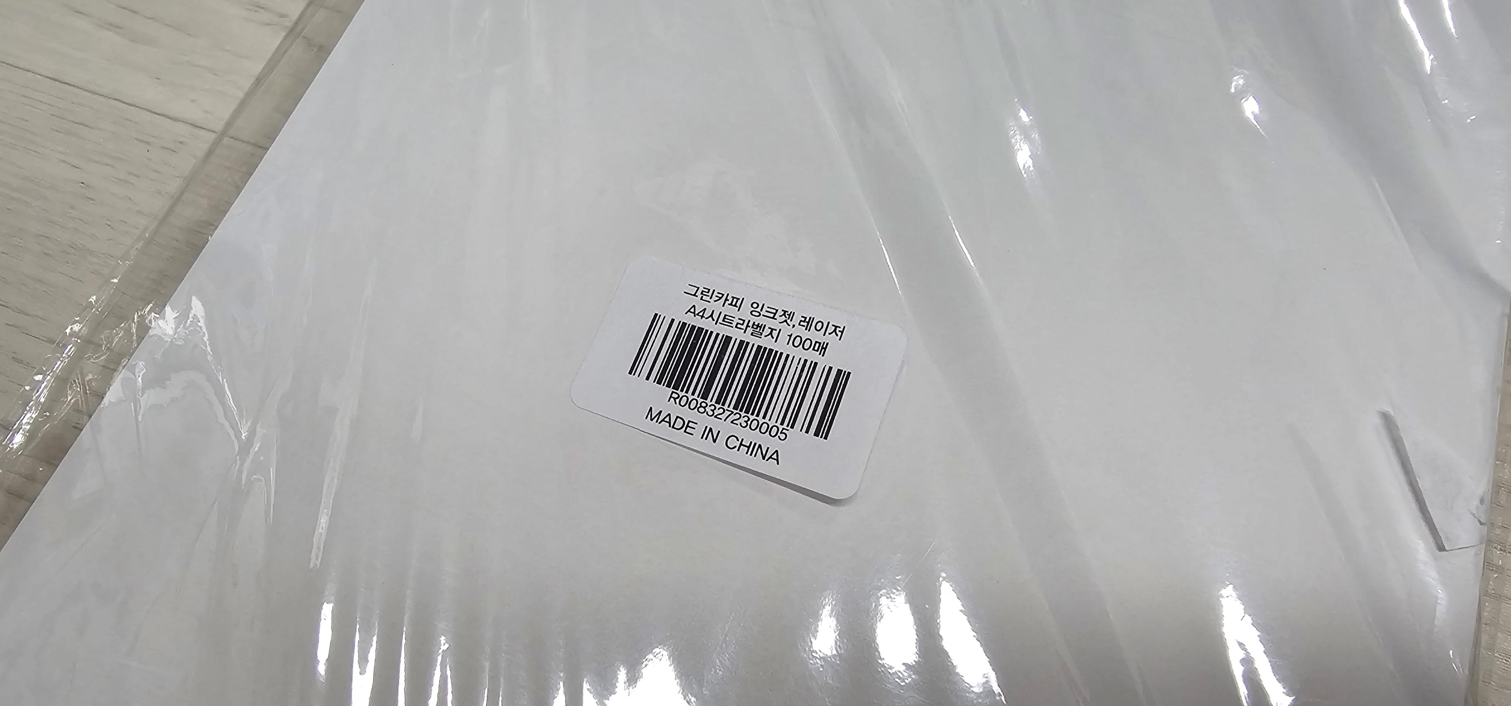 그린카피 제품은 100장, 9천원 미만이고, 방수가 되지 않는 특징이 있고,