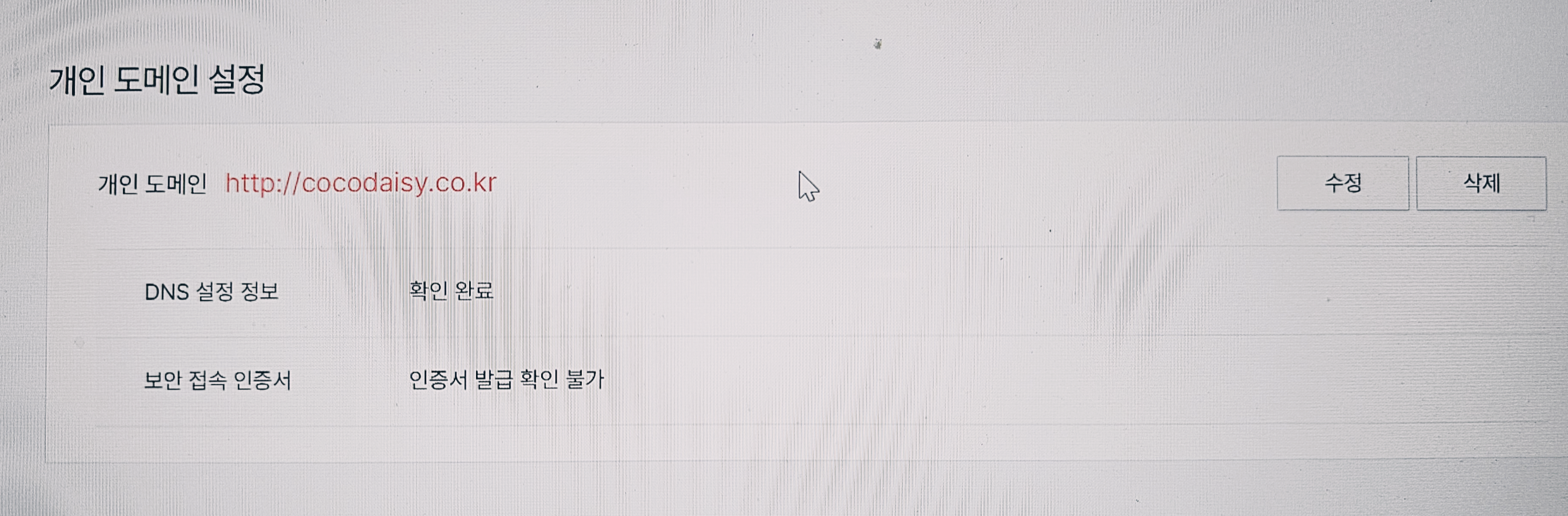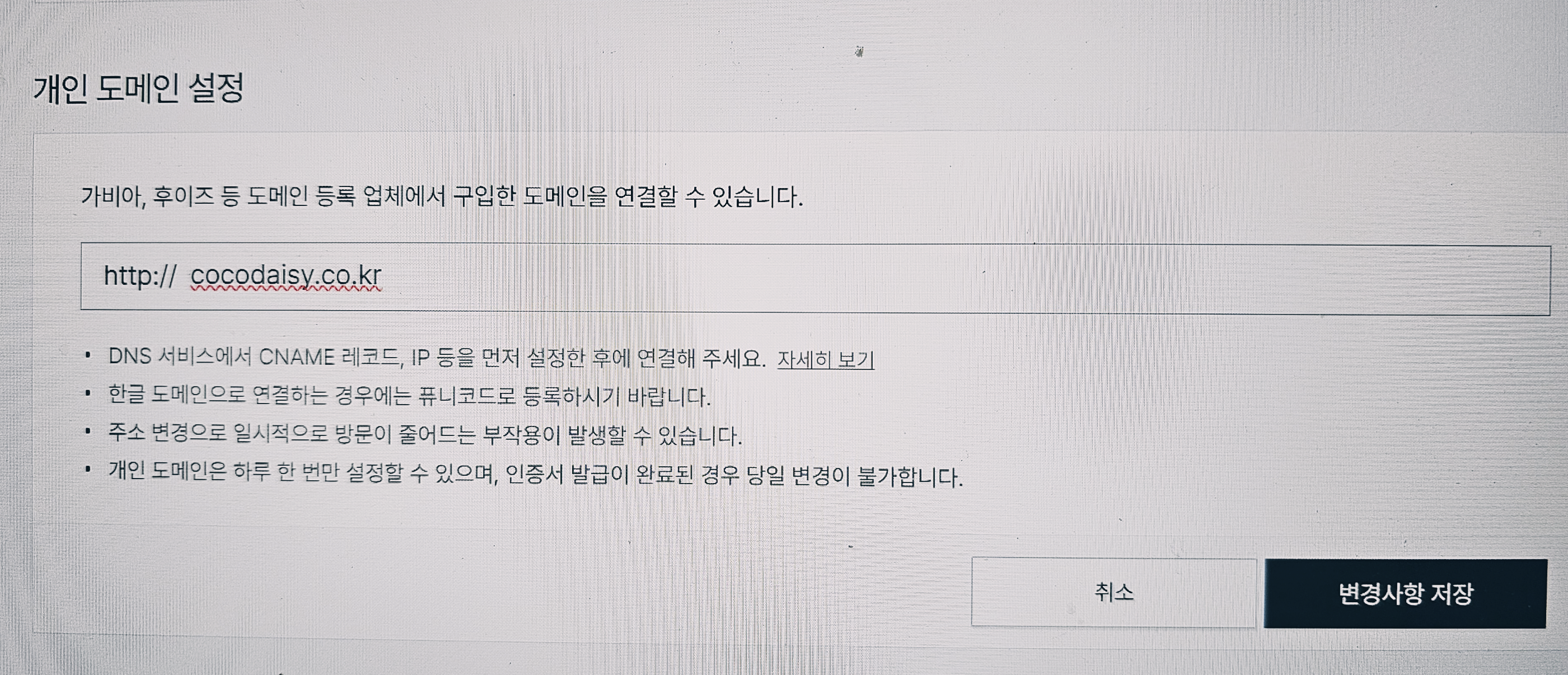 관리 - 블로그 - 개인도메인 설정 부분을 보니,