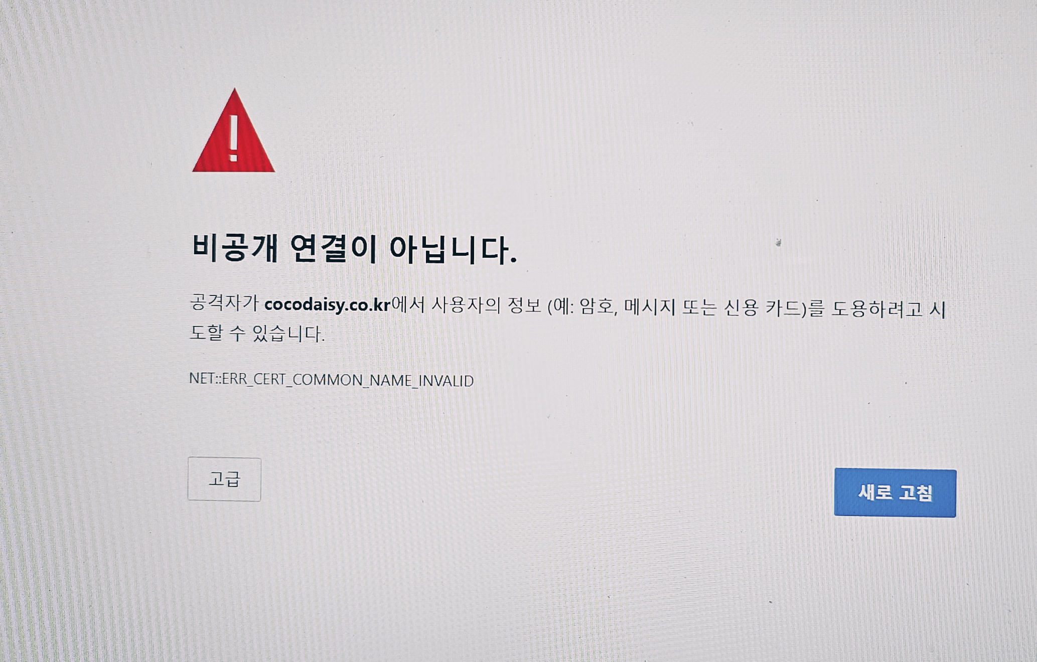 보안 접속인증서가 '인증서 발급 확인 불가' 라고 되어 있더라구요.